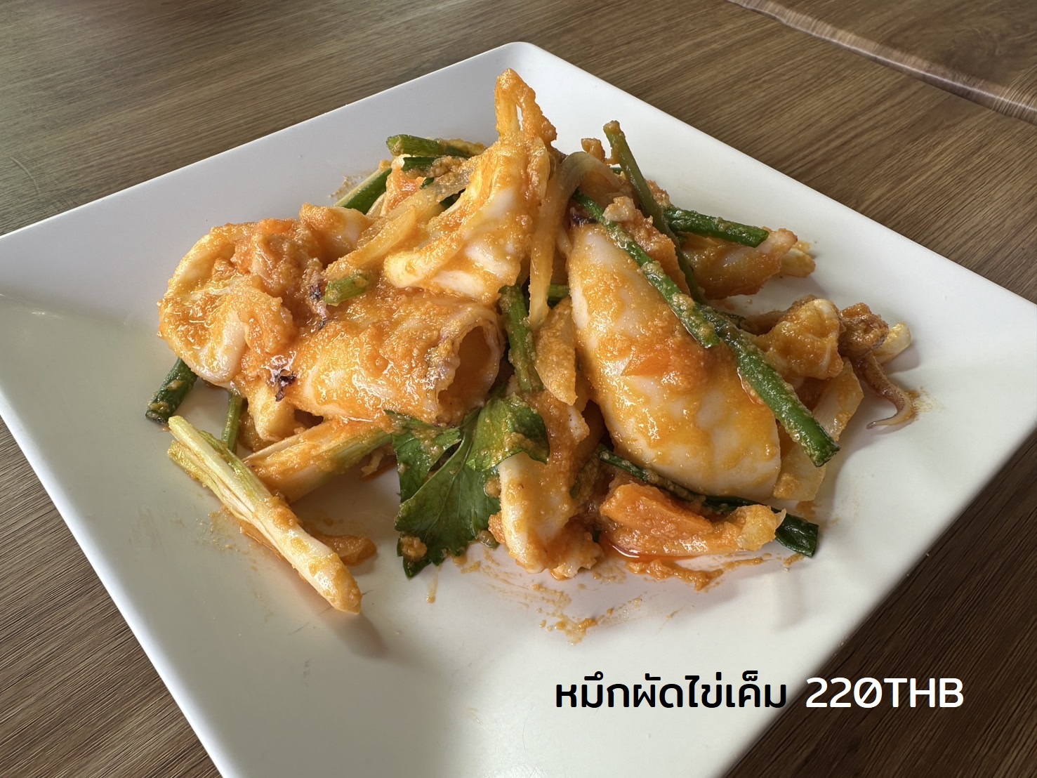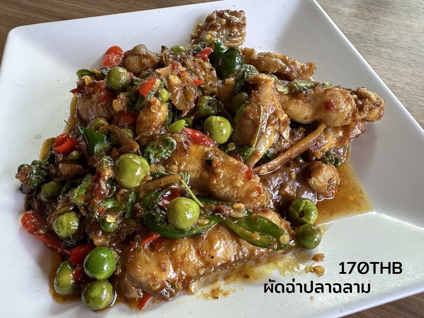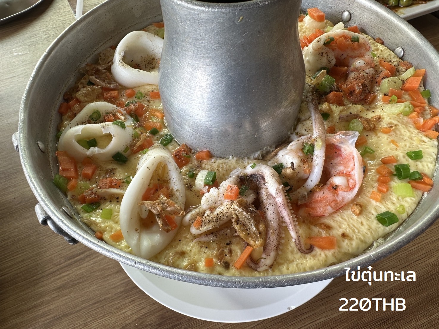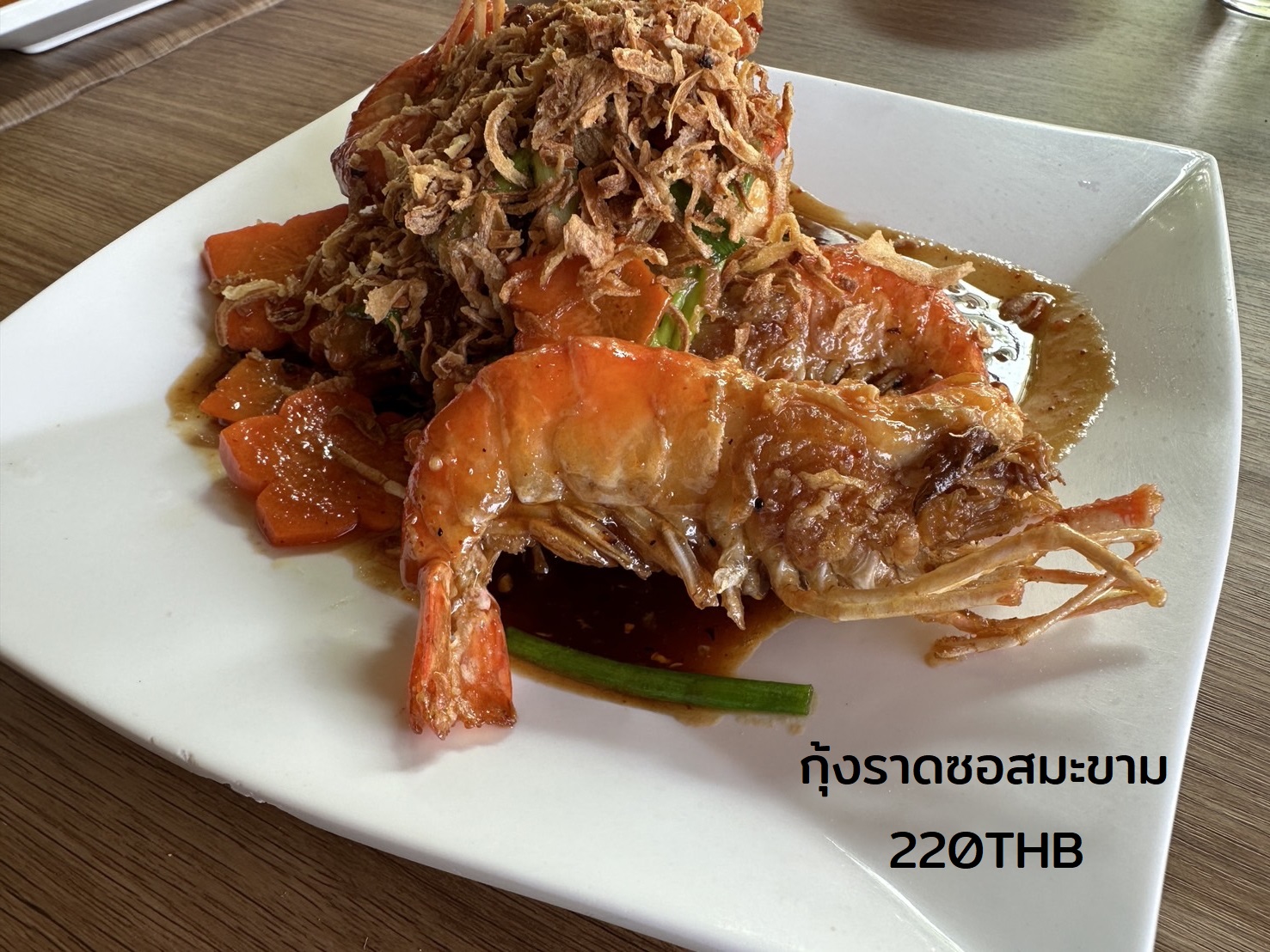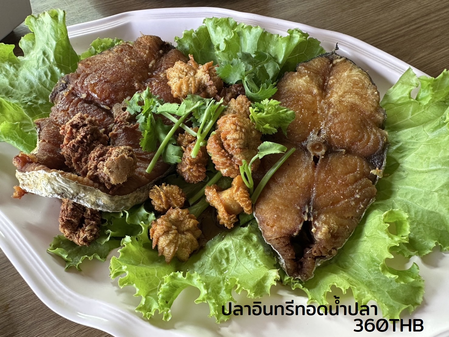 おすすめ料理(写真) ●プラーインシートーナンプラー(サワラの魚醤フライ)ปลาอินทรีทอดนำ้ปลา●プラーチャラームパッチャー(サメ肉のピリ辛炒め)ปลาฉลามผัดฉ่า●クンラートソースマカム(エビのタマリンドソース添え)กุ้งราดซอสมะขาม●カイトゥンタレー(海鮮タイ風茶碗蒸し)ไข่ตุ่นทะเล●ムックカイケム(イカと塩卵の炒め物)หมึกไข่เค็ม