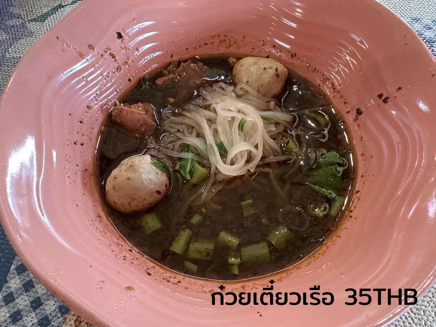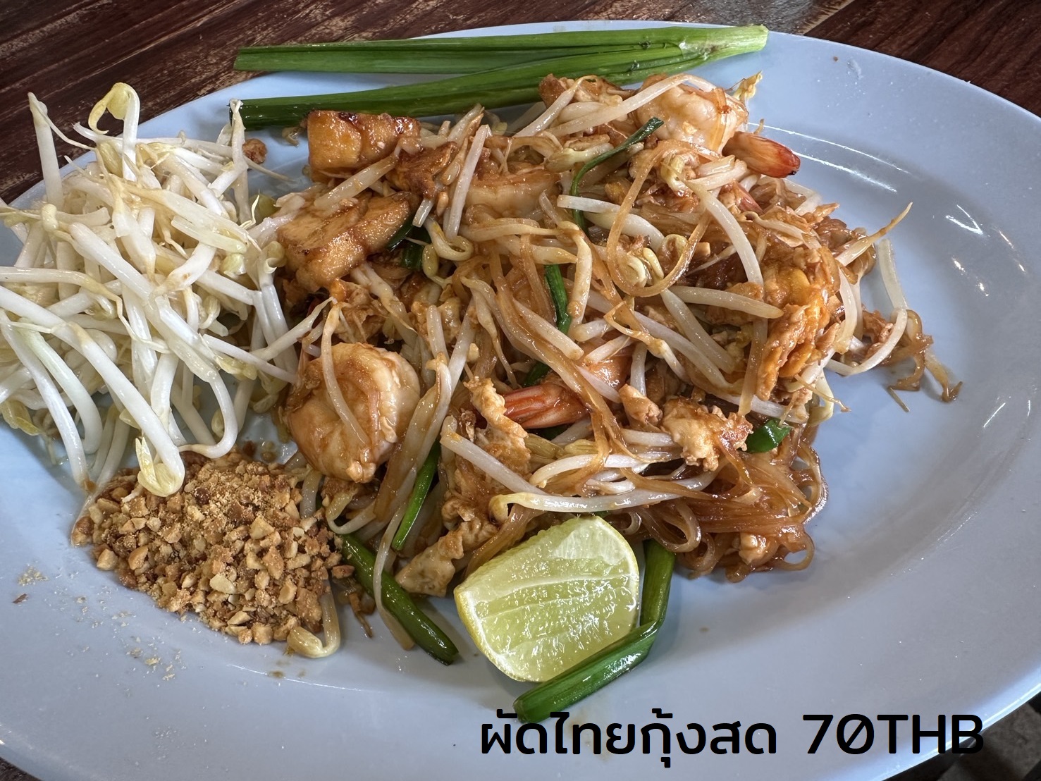 おすすめ料理(写真) ●クイッティアオルア(ボートヌードル)ก๋วยเตี๋ยวเรือ●ムーサテ(豚串焼)หมูสะเต๊ะ●ガポプラー(魚の浮き袋入スープ)กระเพาะปลา●パッタイクンソッ(エビ入りタイ風米麺焼きそば)ผัดไทยกุ้งสด●ソムタム(青いパパイヤのサラダ)ส้มตำปูปลาร้า