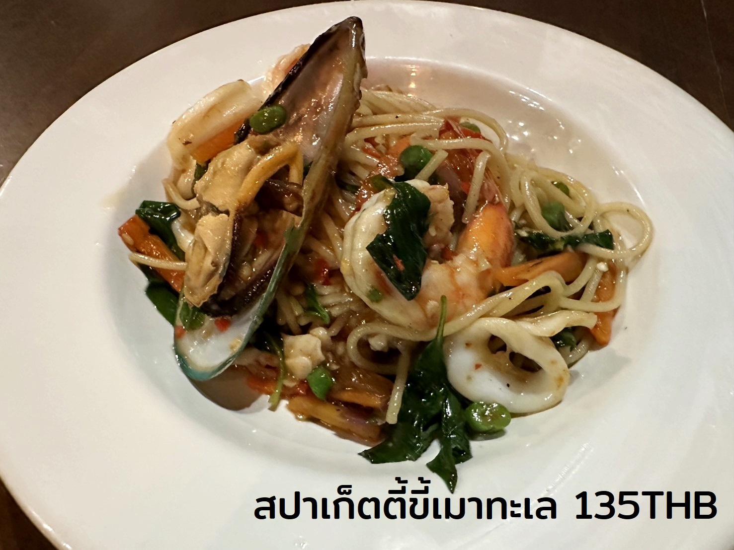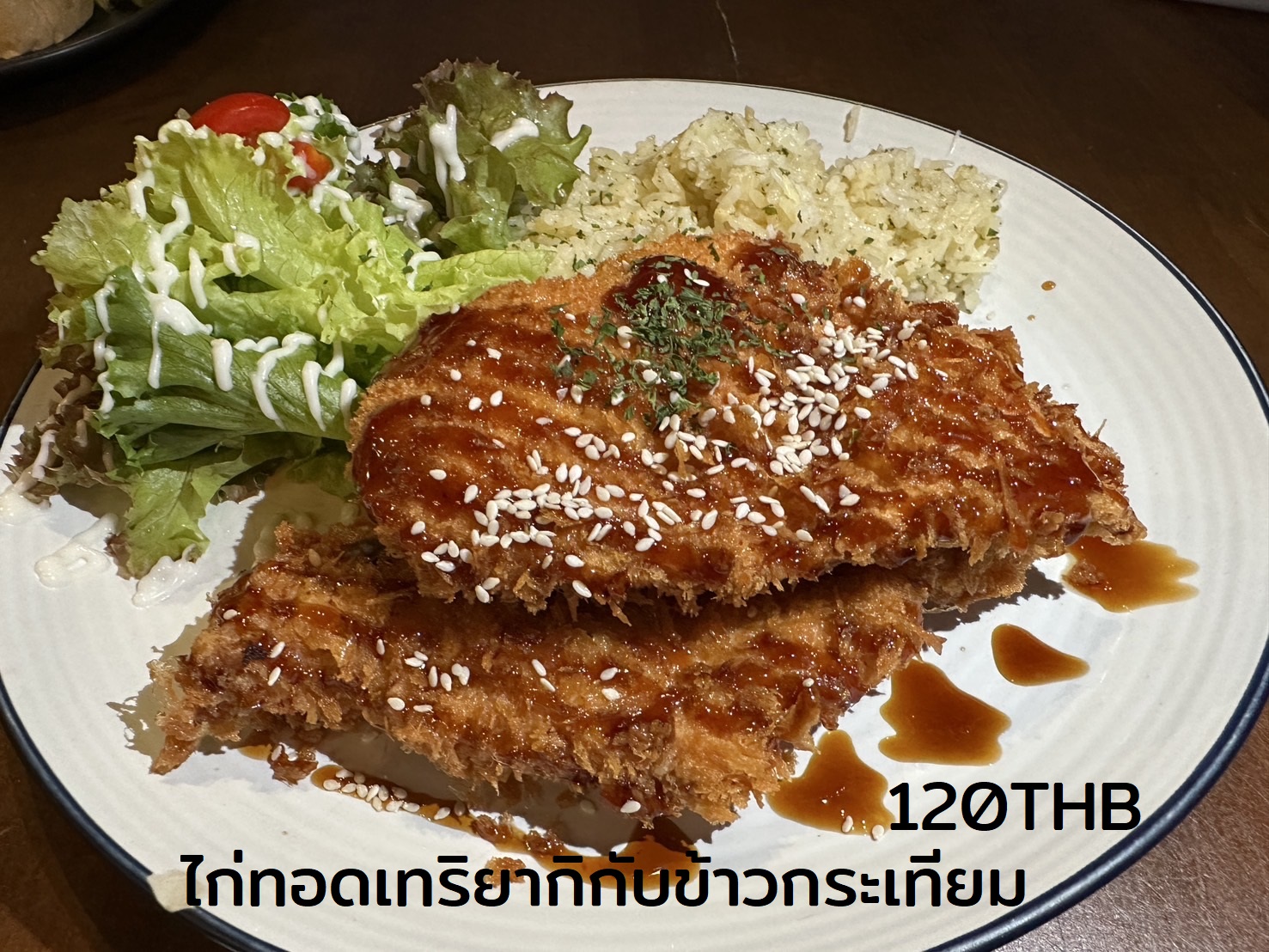 おすすめ料理(写真) ●カオゲンカリーカイコンクン(エビと卵のカレーライス)ข้าวแกงกระหรี่ไข่ข้นกุ้ง●スパゲッティキーマオタレー**(海鮮辛スパゲッティ)สปาเก็ตตี้ขี้เมาทะเล●シーコンバーベキュー(BBQ Ribs)ซี่โครงบาร์บีคิว●ガイトーテリヤキカオガティアム(テリヤキチキンとガーリックライス)ไก่ทอดเทริยากิข้าวกระเทียม