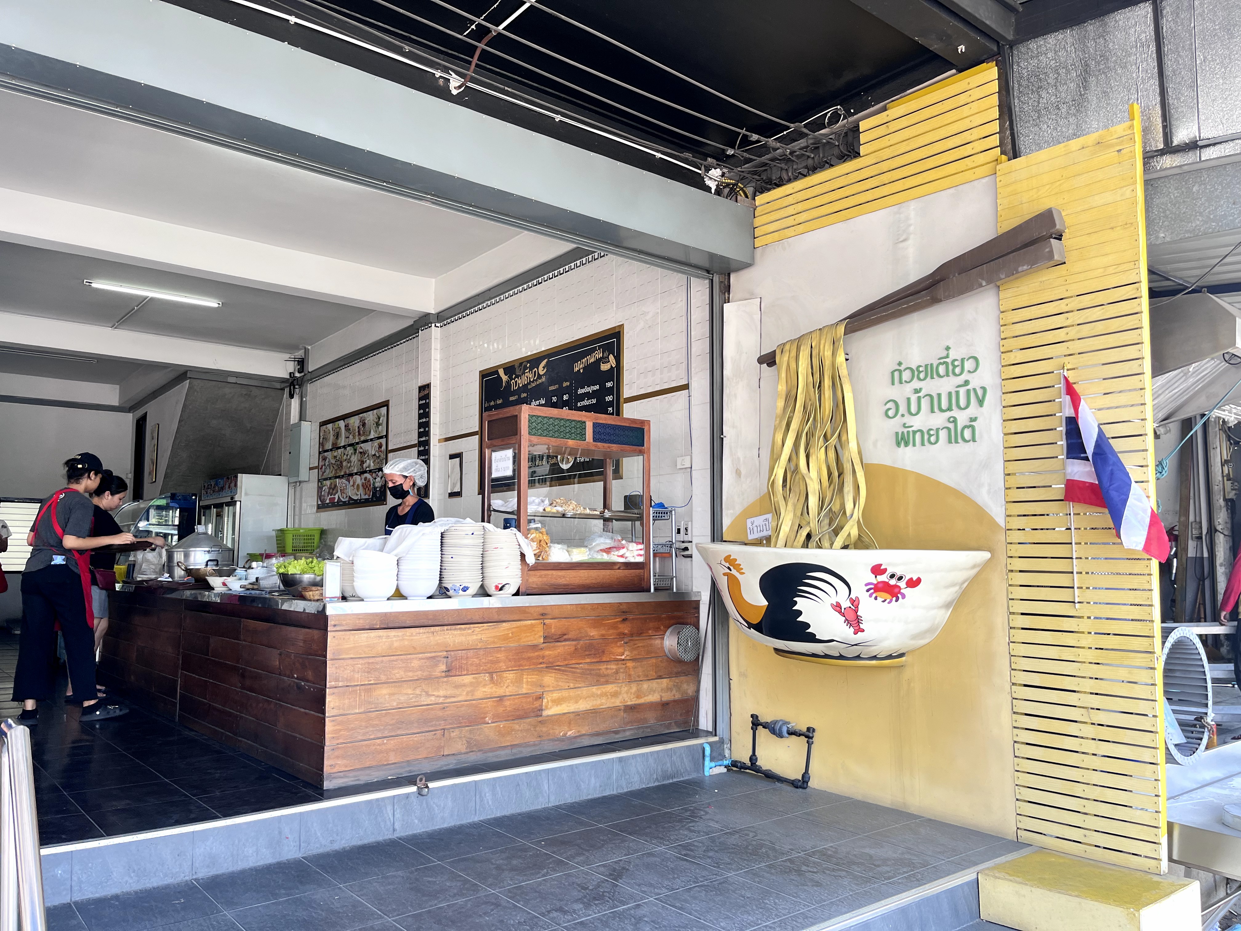 地元で長年愛されているクイッティアオの人気店です。以前は南パタヤにあったので店名に南パタヤと入っていますが、現在はセントラルパタヤのPATTAYA ORPHANAGE(パタヤ孤児院)の道路向いにあります。ゴルフ帰りに立寄りやすいところで、AKG社に寄る際も通り道で大変便利な大衆食堂です。クイッティアオバンブンはその名の通りバンブン地方の隠れた名物麺、イカの出汁が香るあっさり味のタイ式麺料理です。細かく刻まれた干しイカやつみれ状の海鮮具材などが入っています。