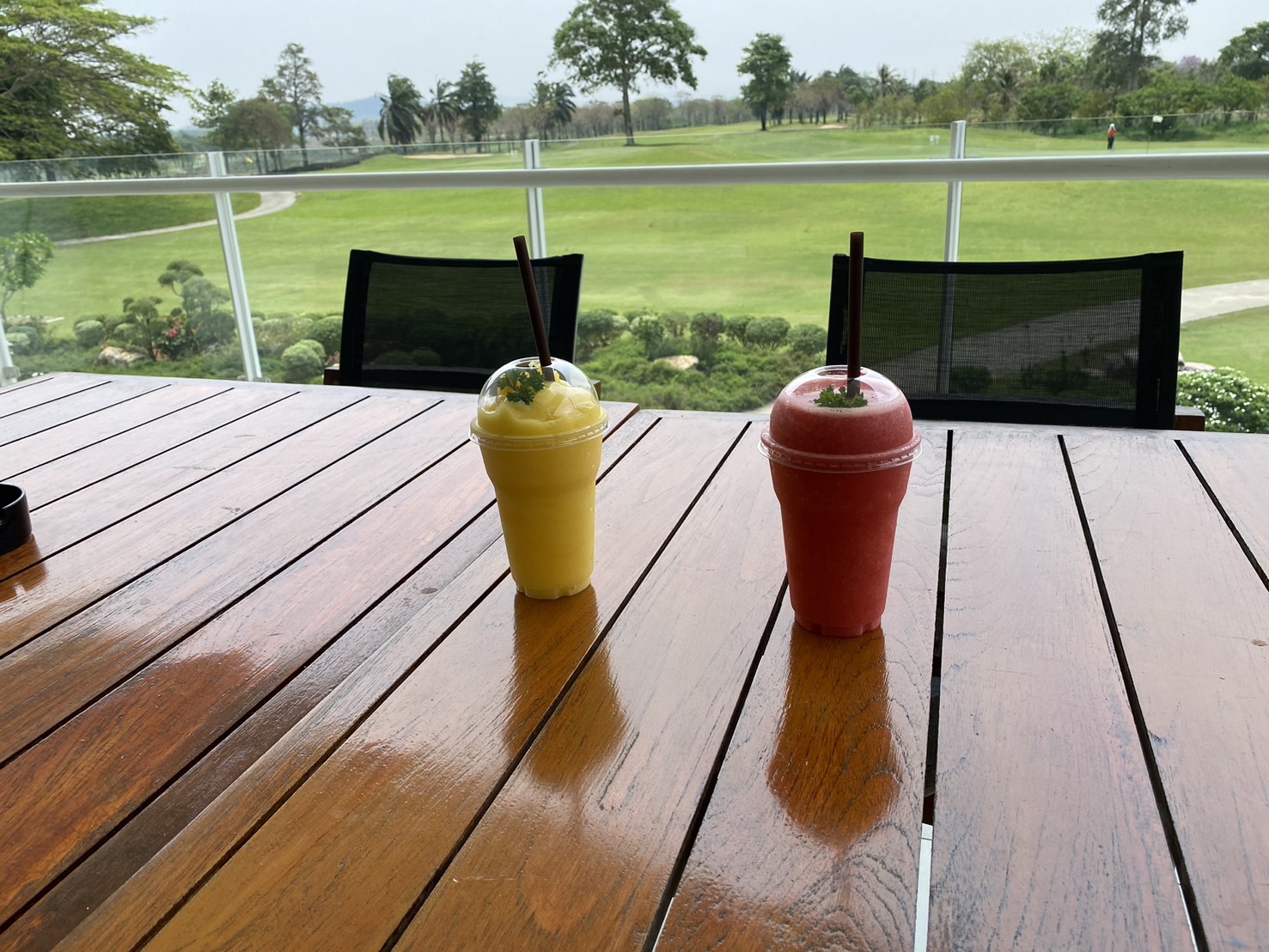 | 2025年3月20日(木)パタヤカントリー、今日も良い天気、おすすめはマンゴスムージー90バーツ、ゴルフで火照った体に最高です | |