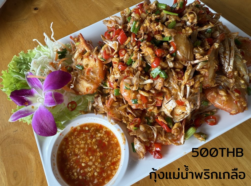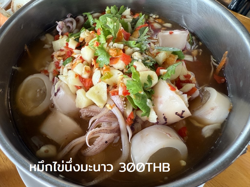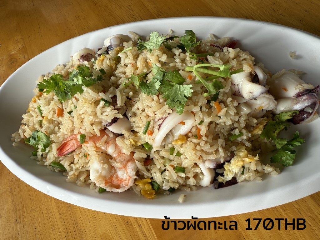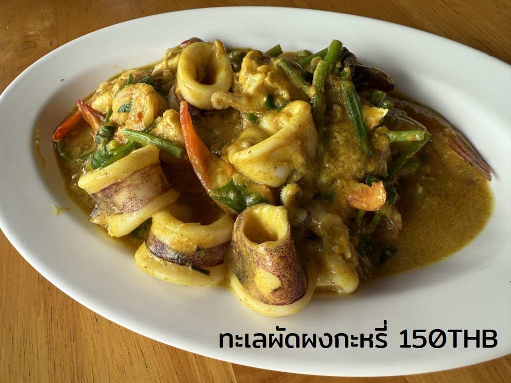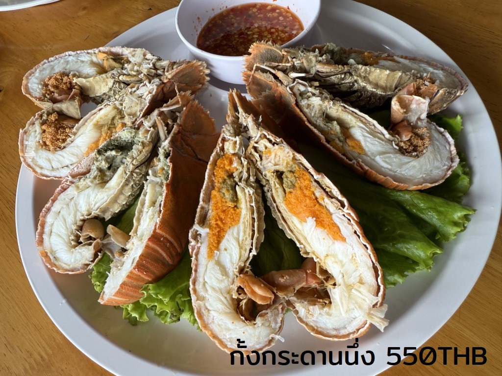 MENU:กั้งกระดานนึ่ง,กุ้งแม่น้ำพริกเกลือ,หมึกไข่นึ่งมะนาว,ข้าวผัดทะเล,ทะเลผัดผงกะหรี่